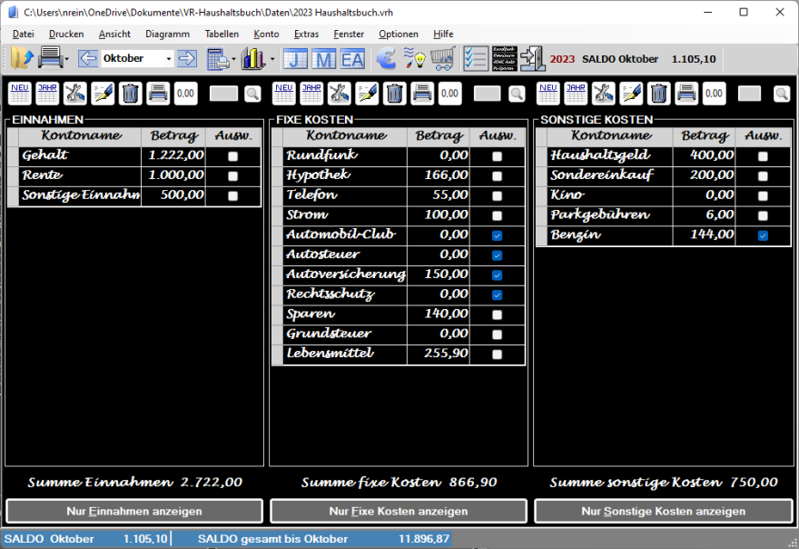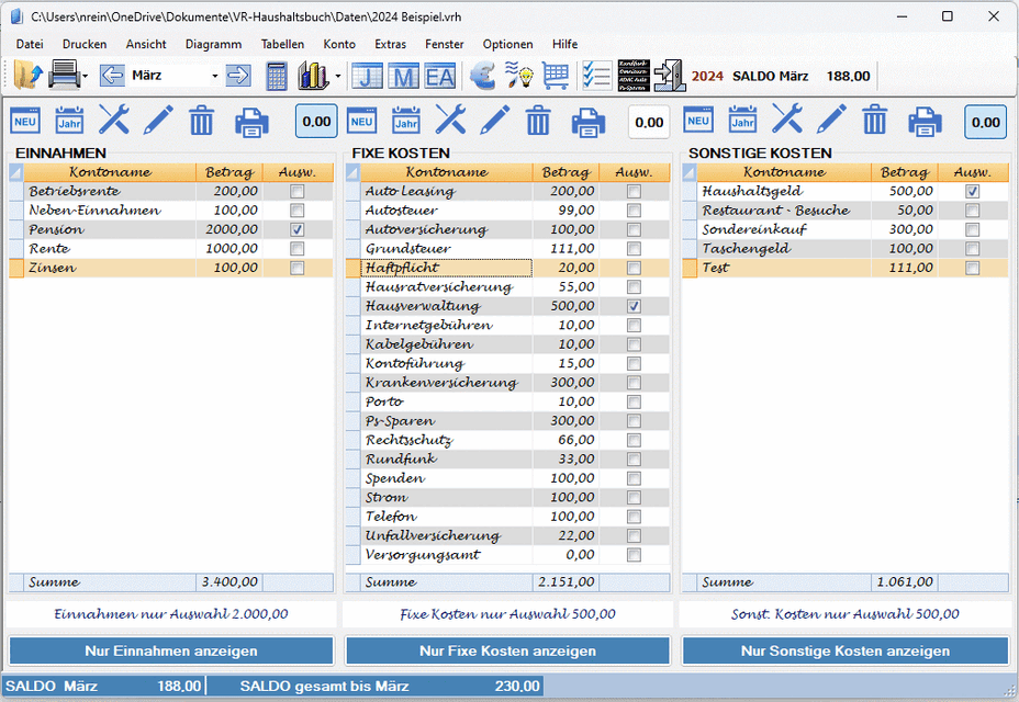 Im Haushaltsbuch zusätzlich integrierte Tools
